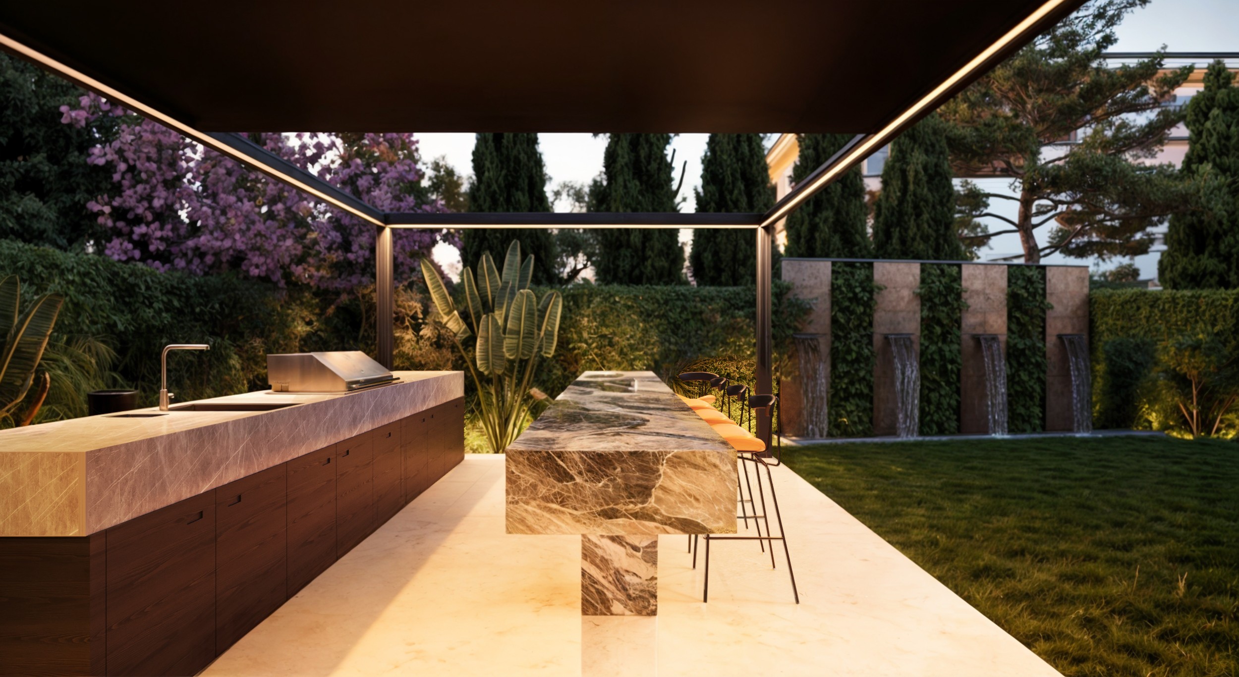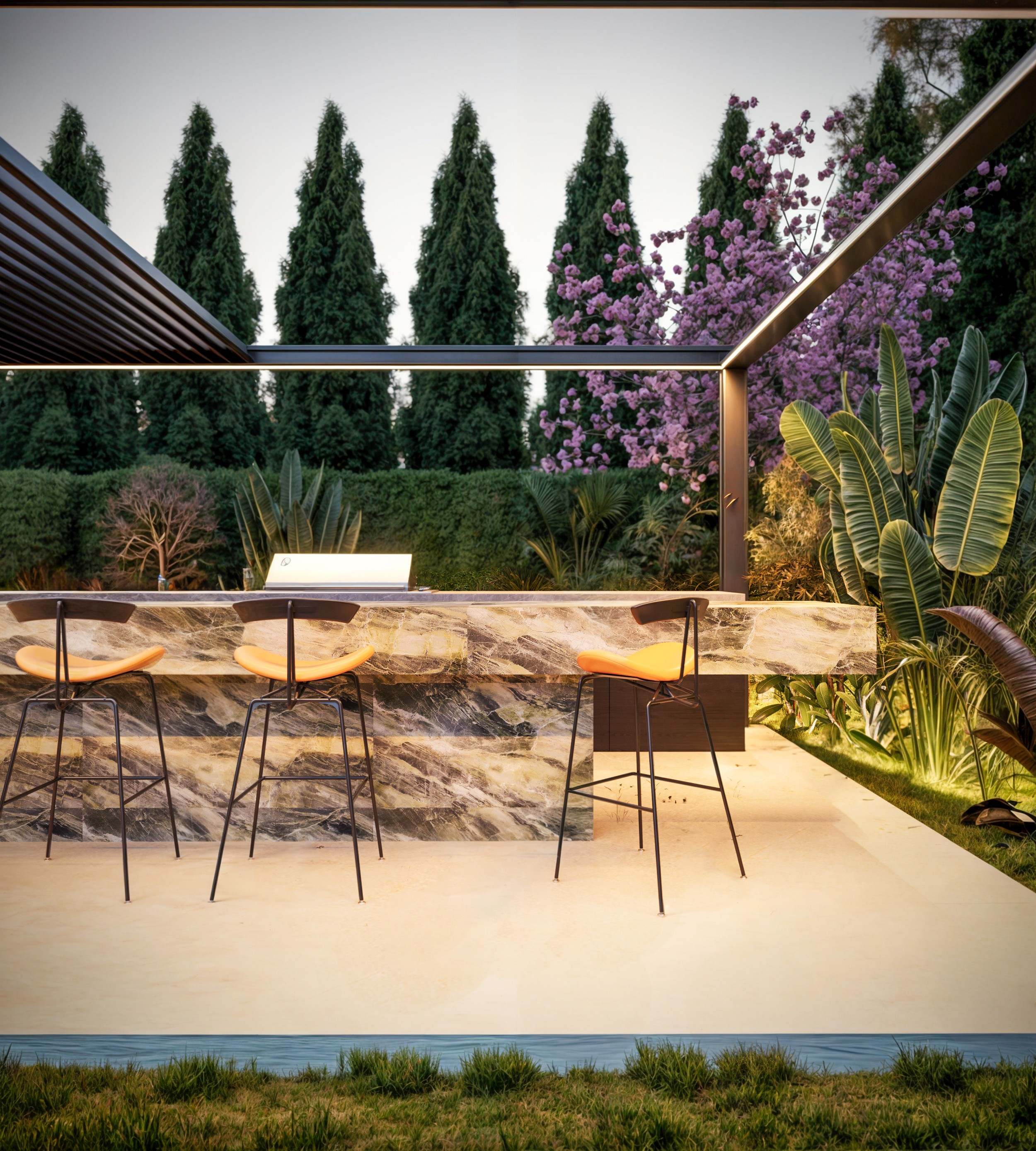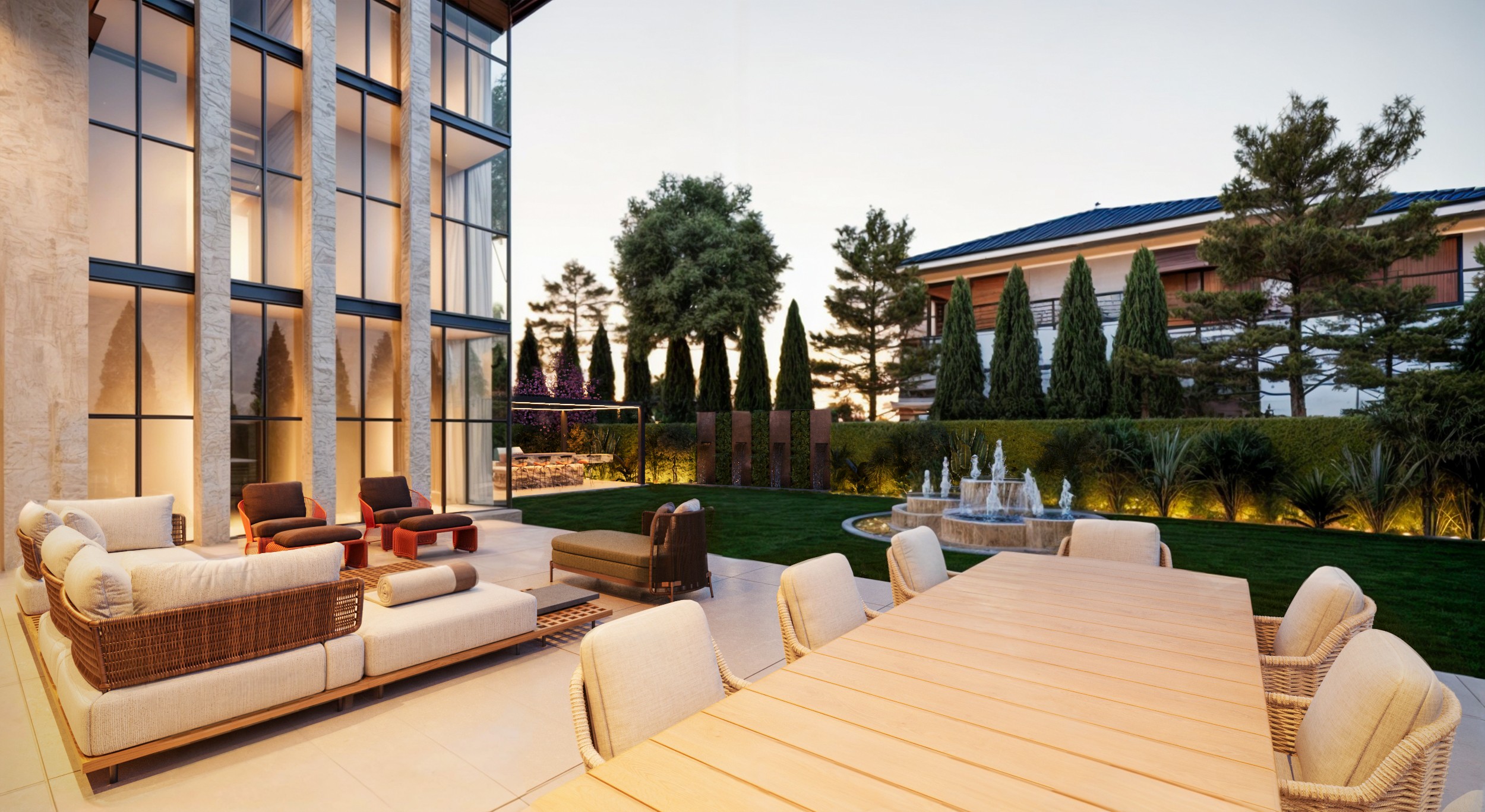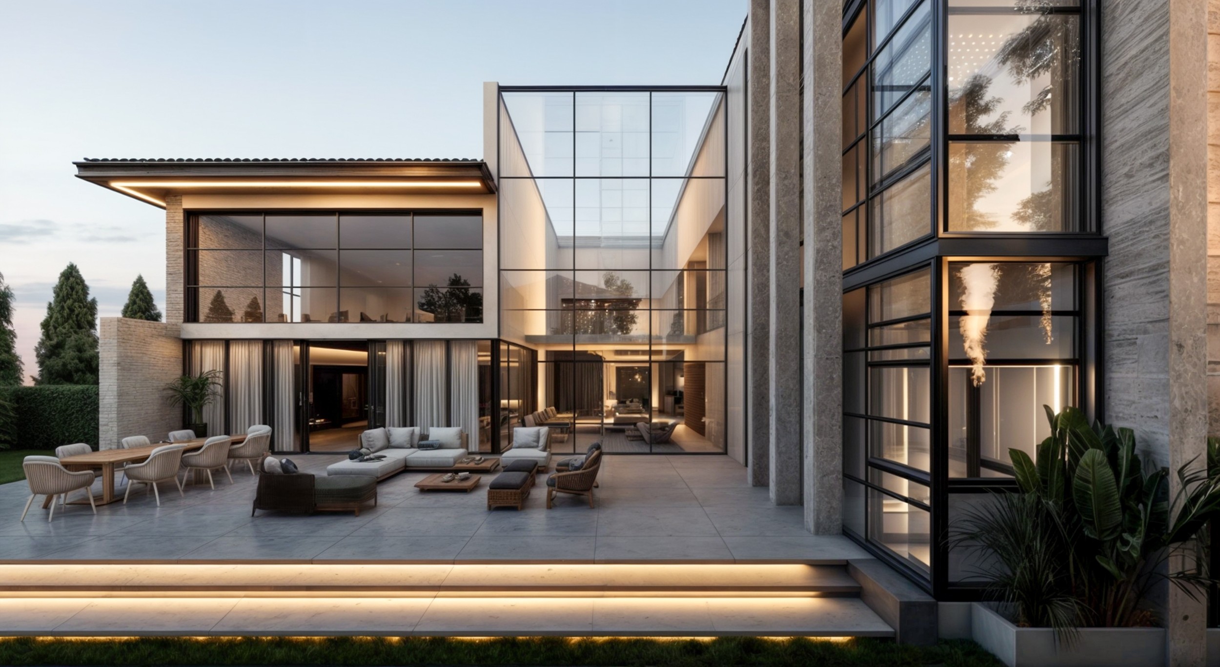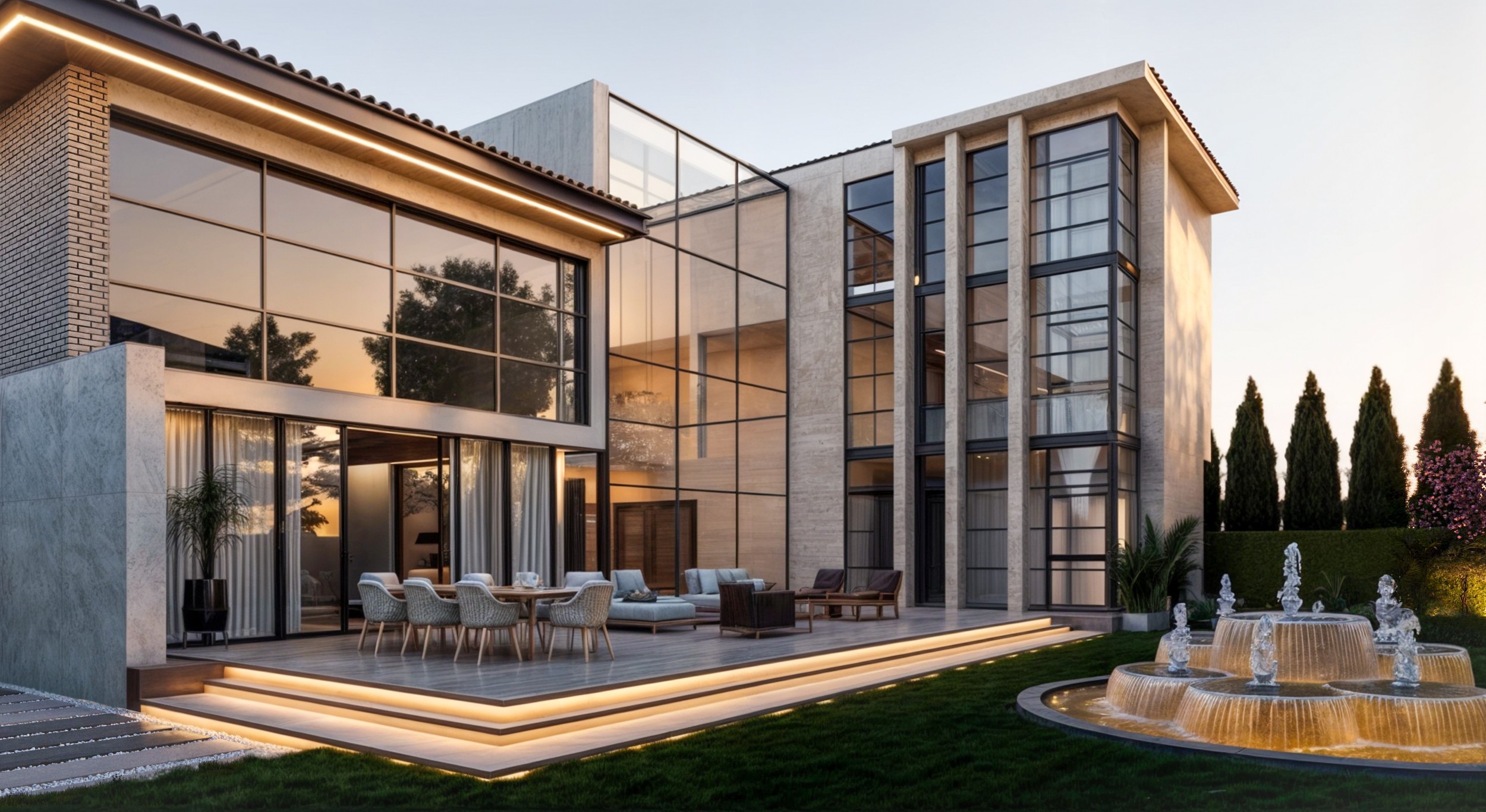 This project expresses a refined contemporary luxury defined by openness, precision, and material harmony. The interior architecture is designed around light, transparency, and spatial continuity, where full-height glazing dissolves the boundary between interior and exterior living. Natural stone, textured plaster, and warm wood finishes create a calm and sophisticated palette, allowing the architecture itself to become the primary element of elegance. Double-height volumes enhance the sense of grandeur while maintaining a balanced, intimate atmosphere through soft lighting and carefully curated furniture pieces. The interior experience is centered on fluid living spaces that prioritize comfort, natural light, and visual connection to the surrounding landscape. Minimalist detailing, concealed lighting, and bespoke furnishings reinforce a timeless aesthetic where luxury is expressed through proportion, craftsmanship, and restraint rather than excess. Every element is composed to create a serene environment that feels both modern and enduring, reflecting a lifestyle of understated sophistication and architectural clarity.